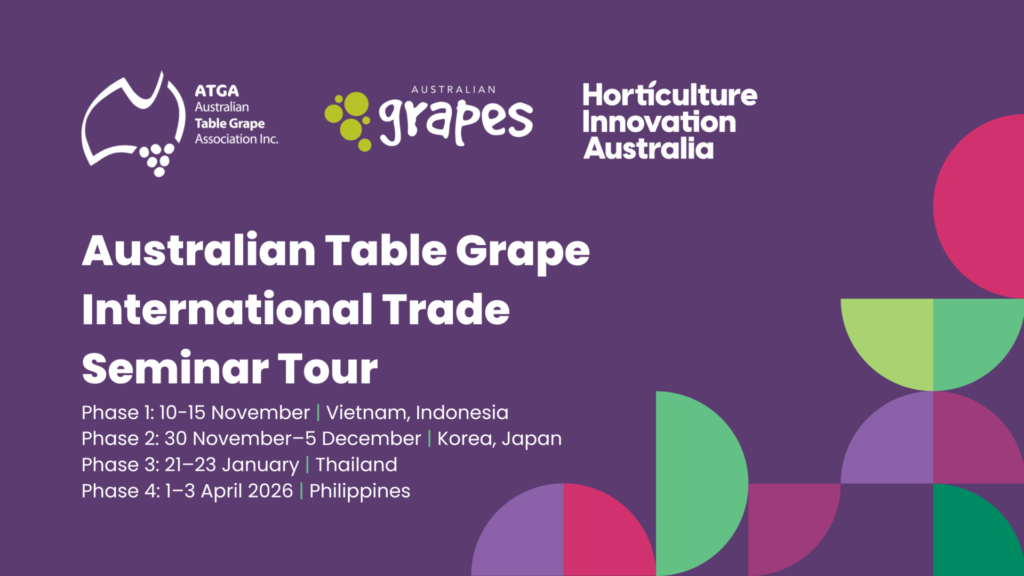 Register now for Phase 3 of the Table Grape International Trade Seminar Series! π When: 21β23 January π Whatβs happening:ATGA will host a trade seminar and retail tour, attend offshoot industry events, and invite exporters and exporting growers to participate. This exclusive opportunity will help raise the profile of Australian table grapes in Thailand, while […]