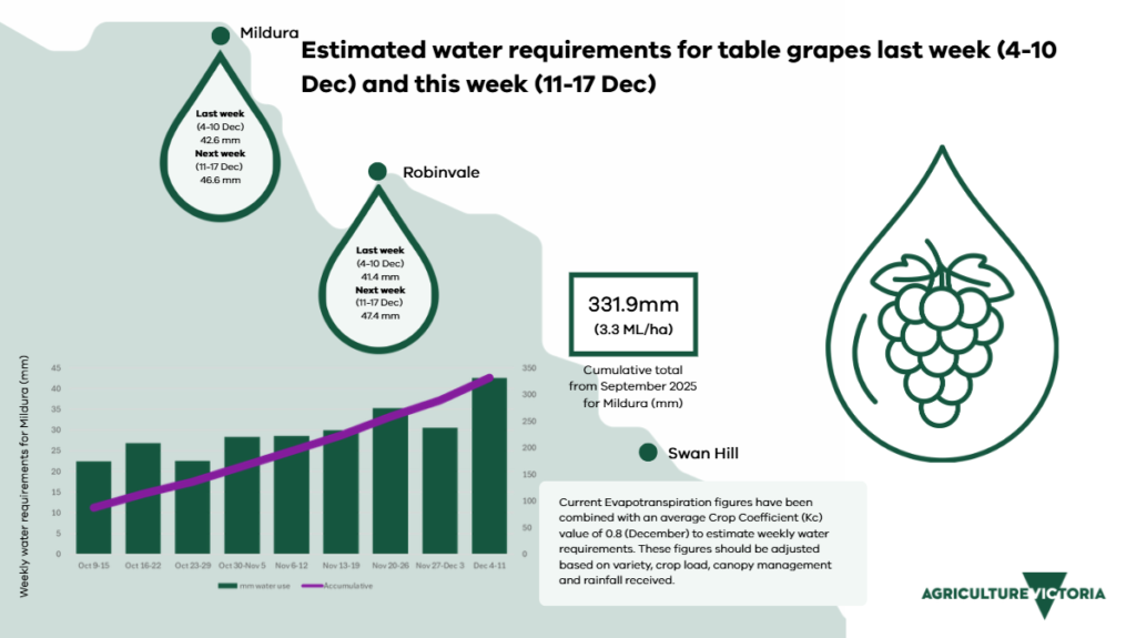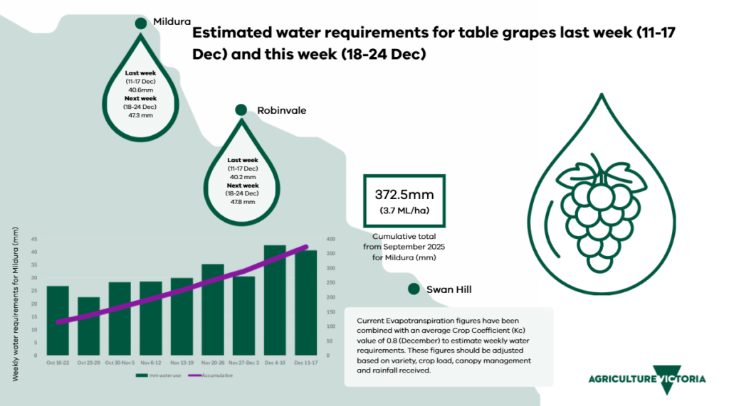 The ATGA will publish weekly Evapotranspiration updates, to help Sunraysia table grape producers improve irrigation planning and decision-making.