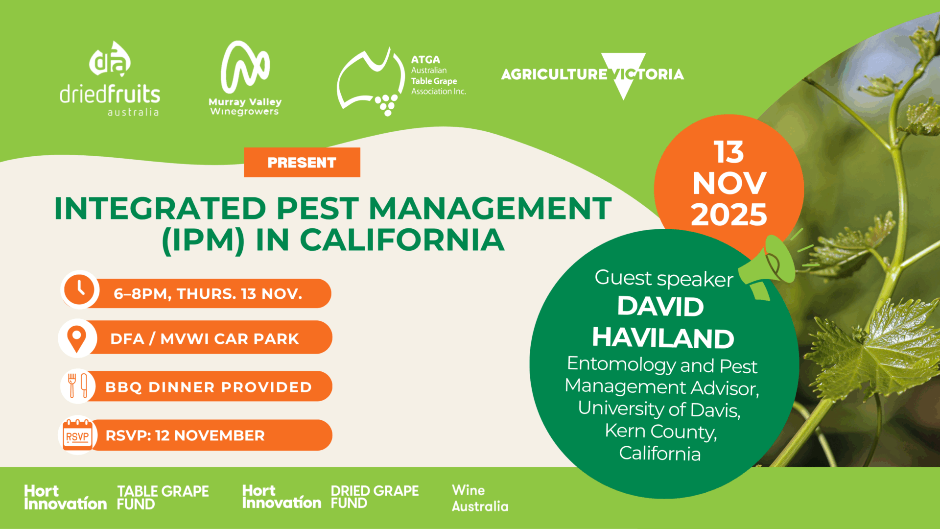 Sunraysia producers are invited to a joint industry event next week featuring US pest management specialist David Haviland. David will share insights from more than ...